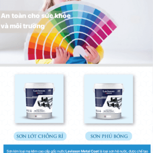 Sơn kim loại Lavisson Metal Coat là dòng sơn cao cấp chuyên dùng cho sắt mạ kẽm, sắt thép, inox và các bề mặt kim loại khác. Với thành phần nhựa Acrylic nguyên chất, phụ gia tăng cường và màu sắc đa dạng, sản phẩm mang đến lớp phủ bóng mờ sang trọng, bám dính vượt trội, kháng gỉ sét và chống chịu thời tiết. Thời gian khô nhanh (30 phút bề mặt, 2 giờ khô cứng), độ phủ cao 12 – 14 m²/lít/lớp và hàm lượng VOC thấp ≤ 3 g/lít, Lavisson Metal Coat vừa bền đẹp, vừa an toàn cho môi trường.
